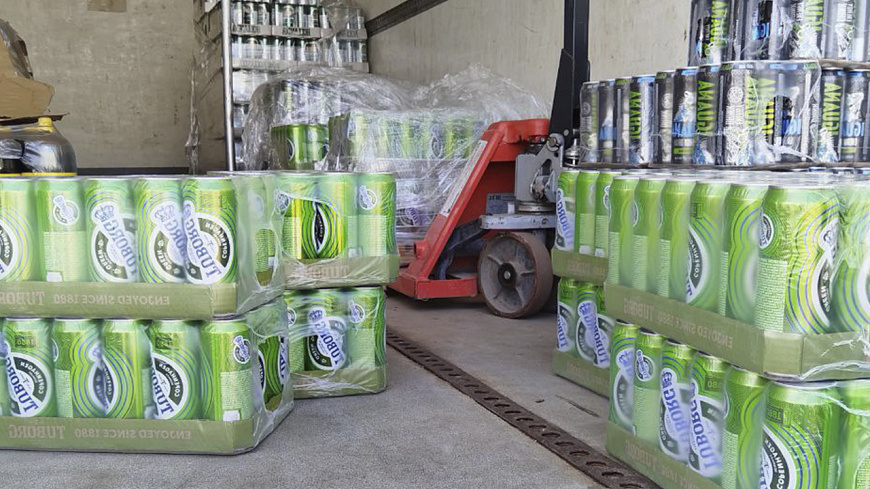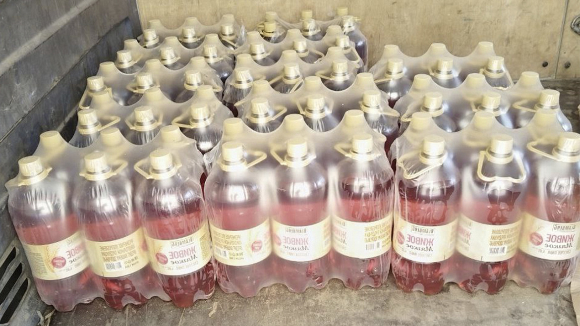При осмотре автомобиля, который находился на территории торговой точки, полицейские обнаружили и изъяли 1644 железные банки с пивом объёмом по 0,45 л и 348 пластиковых бутылок с пивом объёмом по 1,35 л. Общий объём изъятой спиртосодержащей продукции составляет около 1 210 литров.
