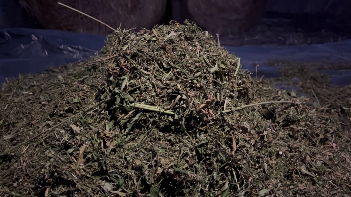 Во время обследования территории частного подворья полицейские на крыше сарая нашли сушащиеся части растений, а также собранную в кучи возле надворных построек скошенную коноплю. Чтобы отправить её на исследование правоохранителям понадобилось десять больших полиэтиленовых пакетов. Согласно результатам исследования, обнаруженное является марихуаной общим весом более 20 кг.