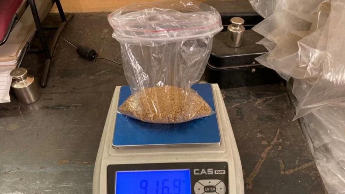 При осмотре служебного автомобиля КАМАЗ, который должен был вывезти бригаду вахтовиков, под пассажирским сиденьем обвиняемого оперативники обнаружили ёмкость из-под шампуня и флакон с надписью «Облепиховое масло», наполненные металлической крошкой жёлтого цвета. Более того, при личном досмотре задержанного мужчины под стельками его ботинок сотрудники полиции обнаружили ещё некоторое количество аналогичного материала.