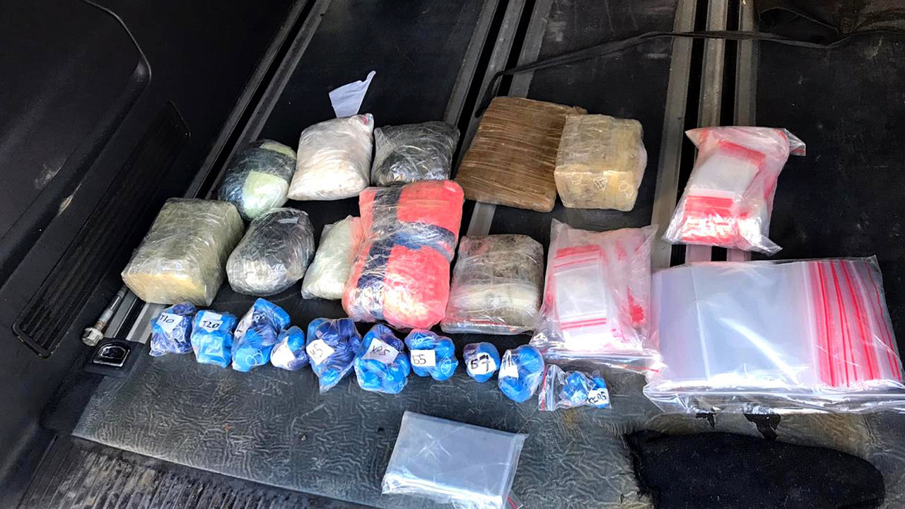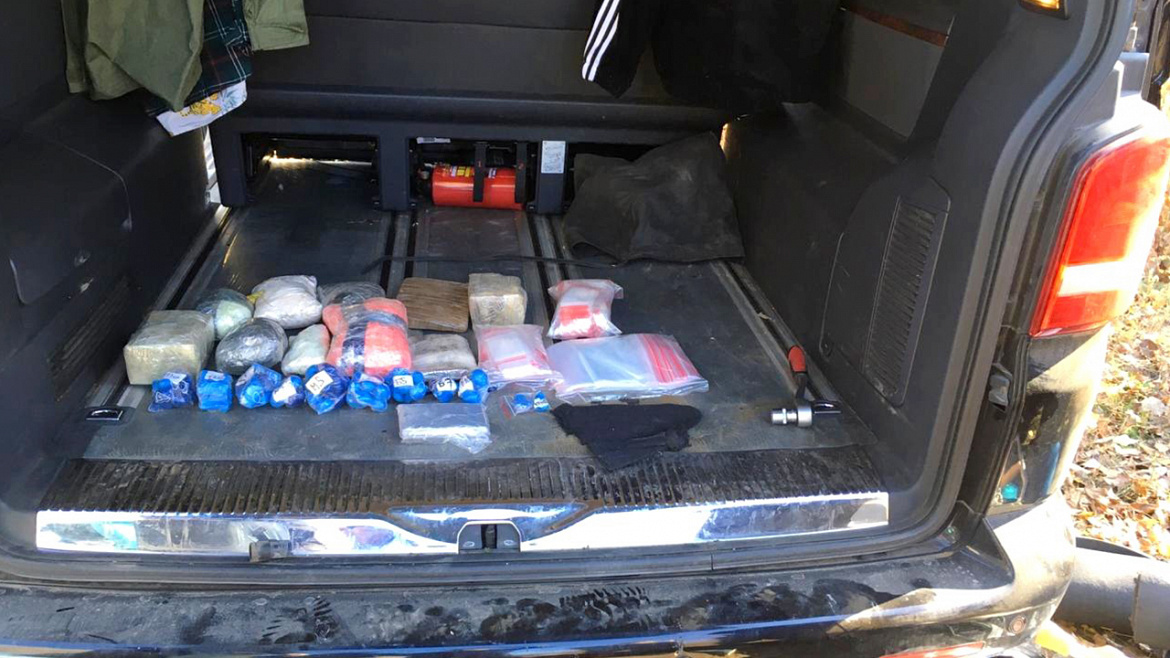 Автомобиль, на котором передвигались обвиняемые, был остановлен силовиками в селе Яманцуг Приволжского района Астраханской области. В салоне транспортного средства, а также из тайников полицейские изъяли 2,5 кг «соли», около 2 кг гашиша, свыше 1,3 кг «экстази», 750 граммов марихуаны, порядка 30 граммов кокаина и амфетамина.
