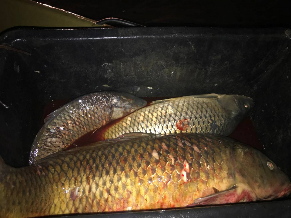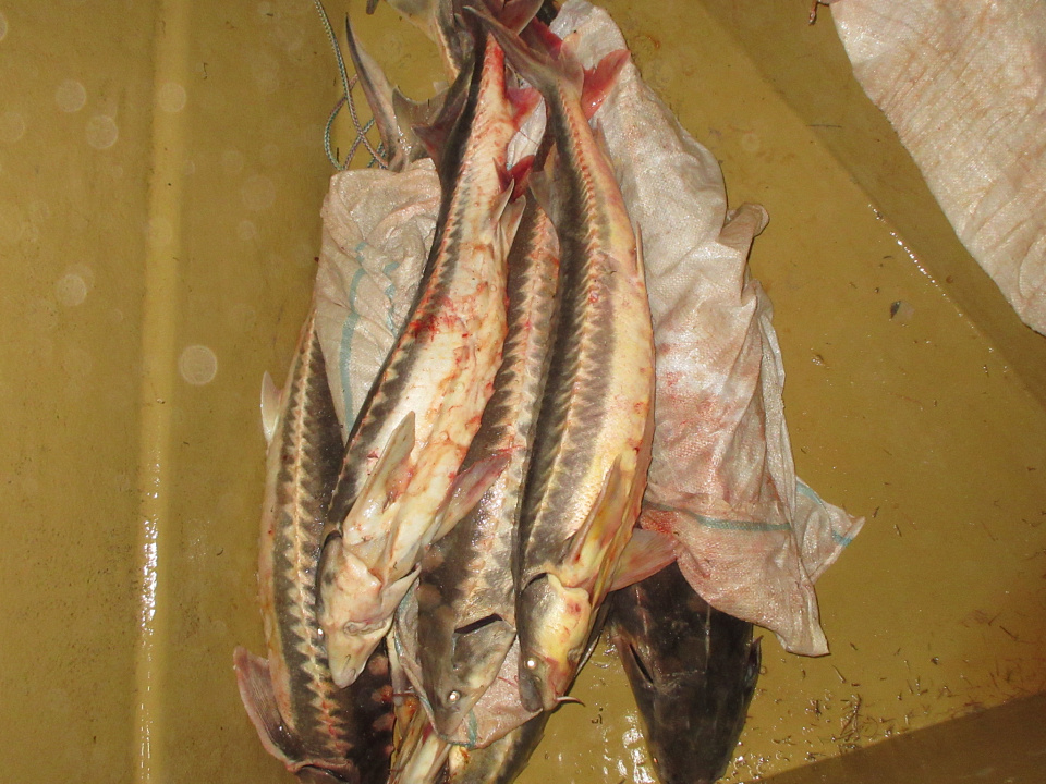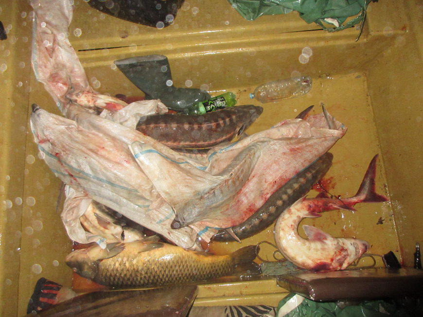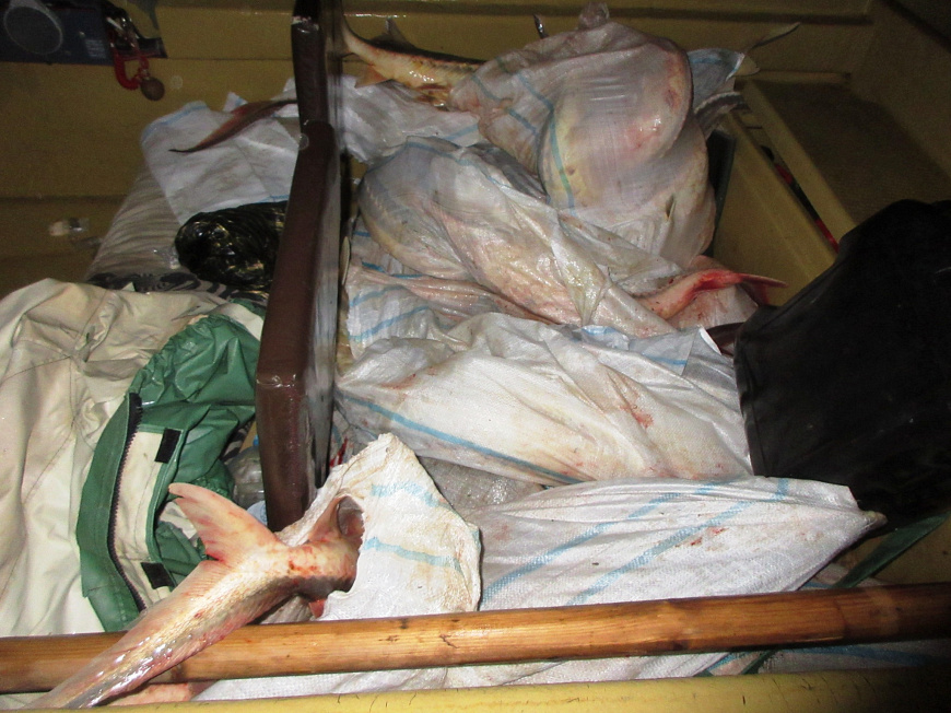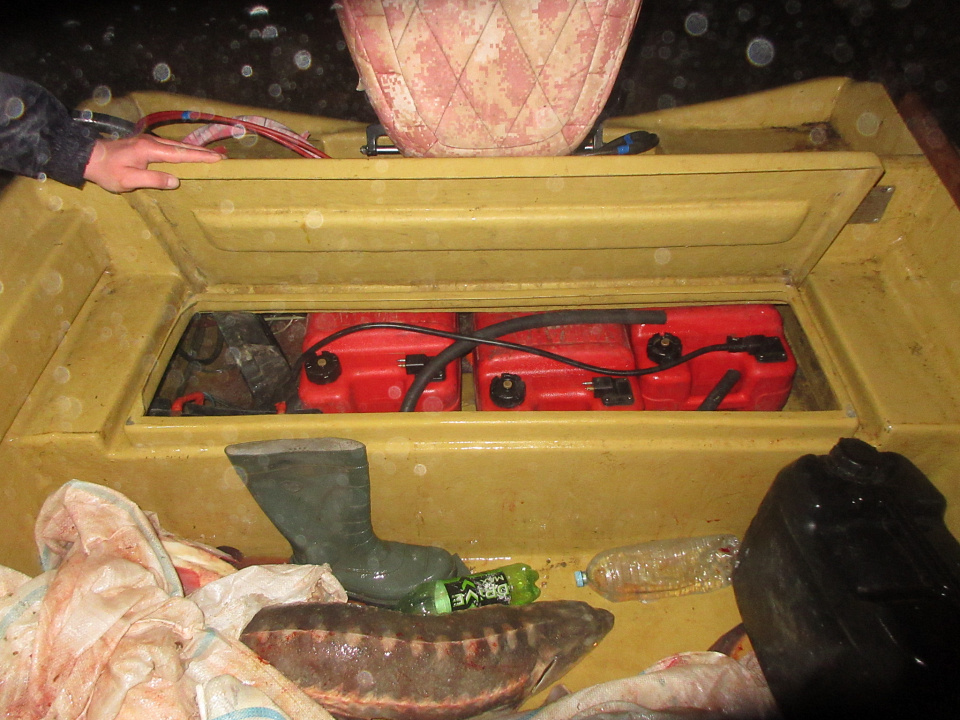 При осмотре плавсредства автоинспекторы обнаружили 11 мешков со свежевыловленной рыбой осетровых и частиковых видов. Водитель пояснил, что достал улов из двух самоловных снастей, сделанных им из верёвок и 244 крючков.