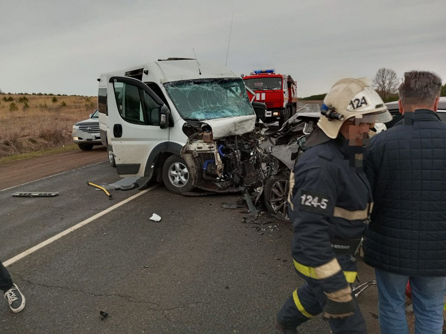 В результате аварии водитель легкового автомобиля от полученных травм скончался. Его пассажир доставлен в больницу. По имеющейся на данный момент информации, водитель микроавтобуса и более 10 пассажиров обратились за медицинской помощью.