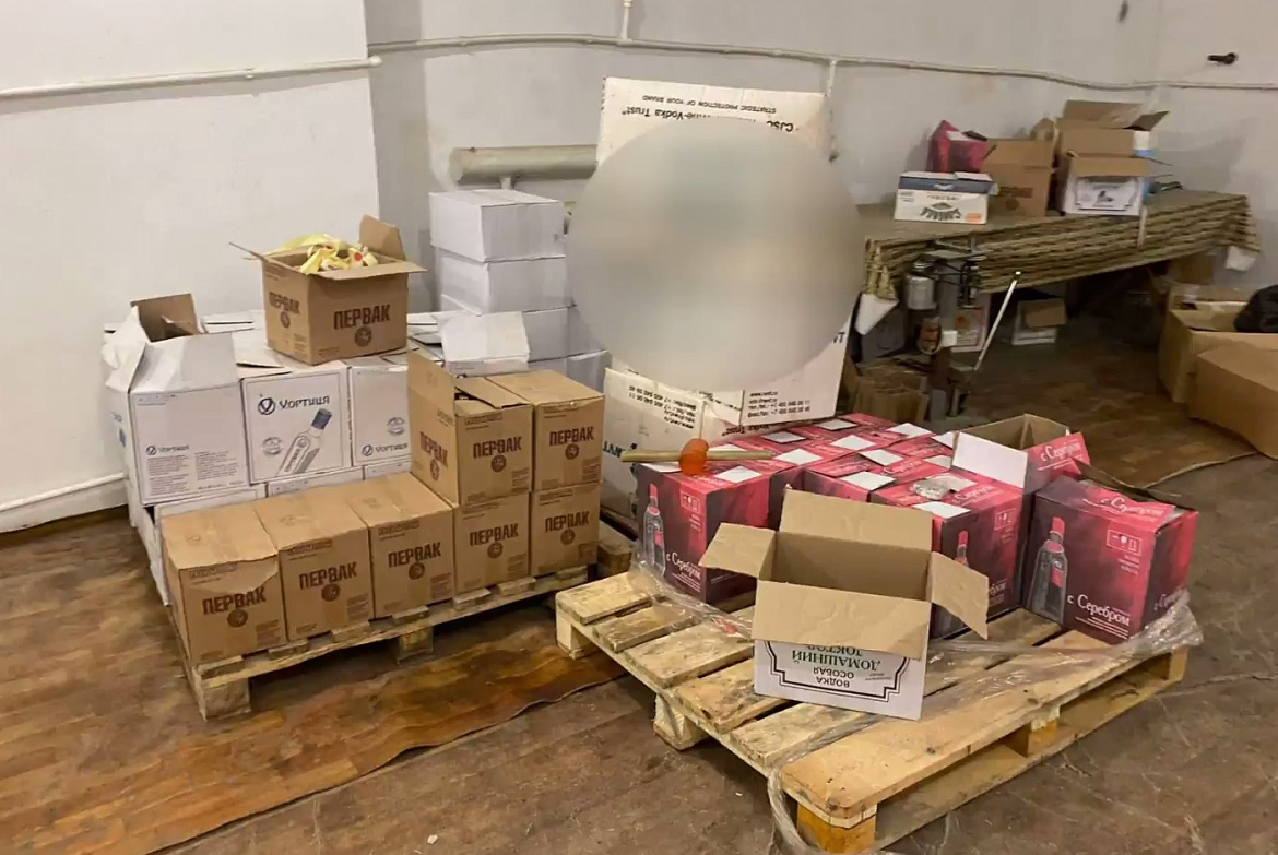 Во время осмотра помещений оперативники обнаружили около трёх тысяч бутылок водки и коньяка ёмкостью 0,5 и 0,25 л, оклеенные этикетами российских производителей, но без федеральных специальных марок, а также крышки, пустую тару, этикетки, водяные фильтры, укупорочный станок, шланги и промышленный фен.