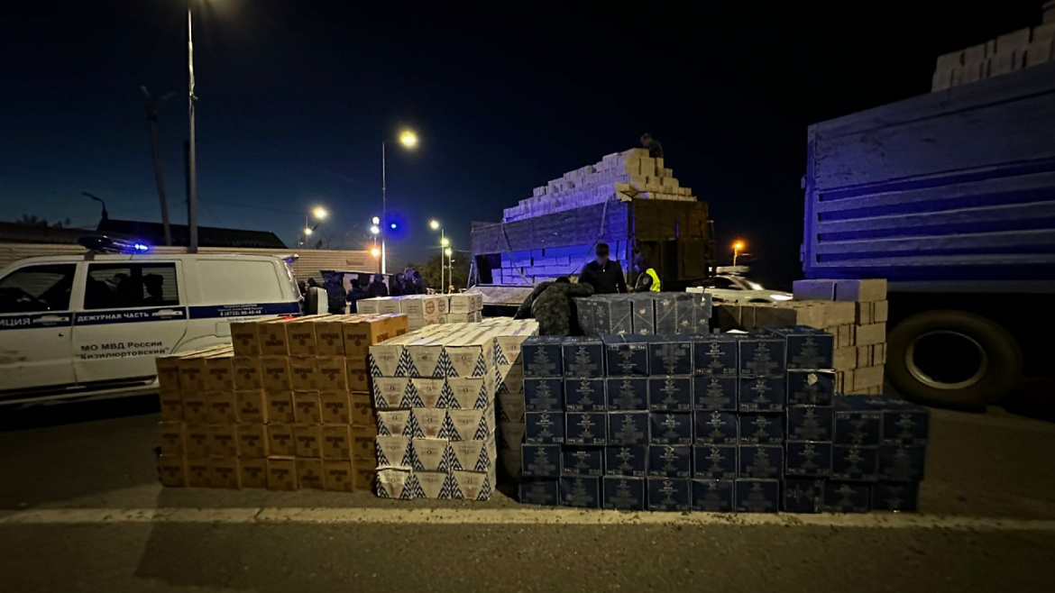 Под стройматериалами в полуприцепе полицейские обнаружили тайник, в котором находилась нелегальная алкогольная продукция. Всего из схрона было изъято свыше 7 тысяч бутылок по 0,5 л каждая без федеральных специальных марок. Согласно экспертной оценке, найденное является спиртосодержащей жидкостью общим объёмом более 3,6 тысячи литров, несоответствующей требованиям ГОСТа. Стоимость контрафактного товара превысила 1,7 млн рублей.