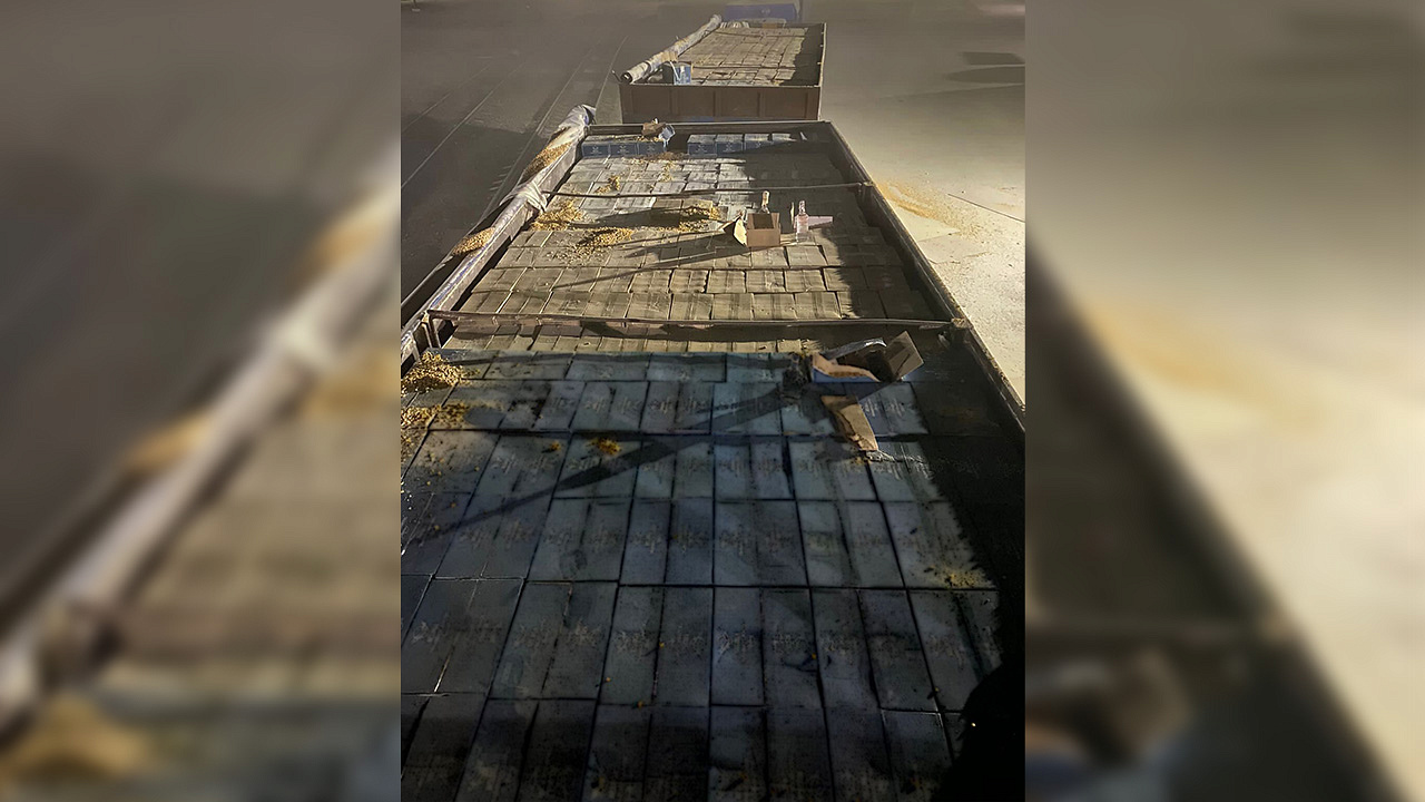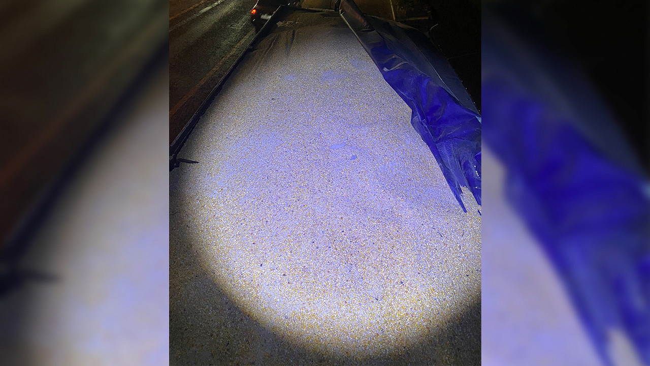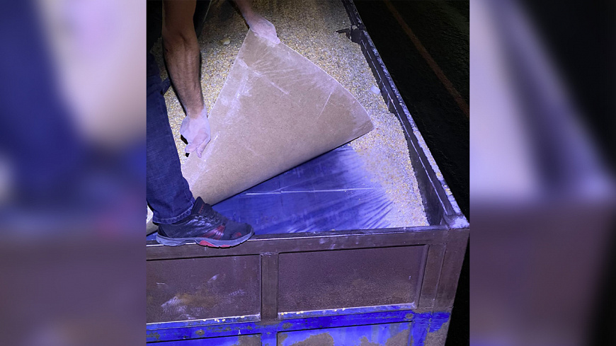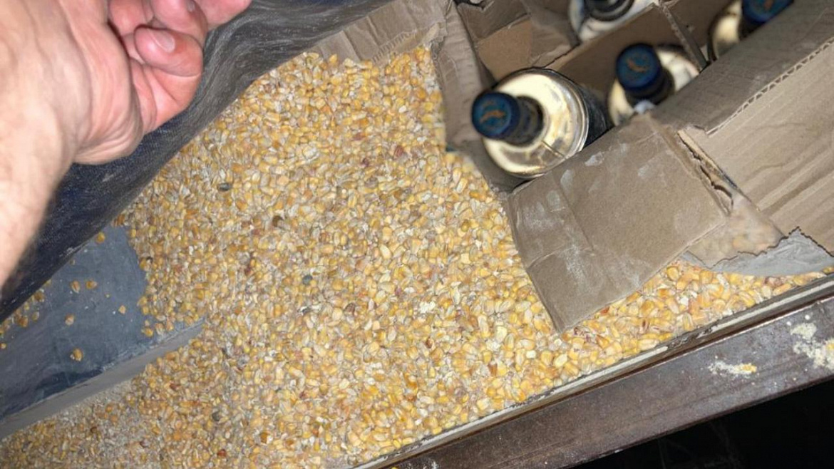 В ходе досмотра транспортного средства сотрудники полиции обнаружили в кузове автомобиля и полуприцепе под слоем кукурузы 1615 коробок, в каждой из которых было по 12 бутылок водки объёмом по 0,5 литра, а также 925 коробок с пластиковыми пятилитровыми канистрами с прозрачной жидкостью. На бутылках с горячительным отсутствовали обязательные для данного вида продукции федеральные специальные марки.