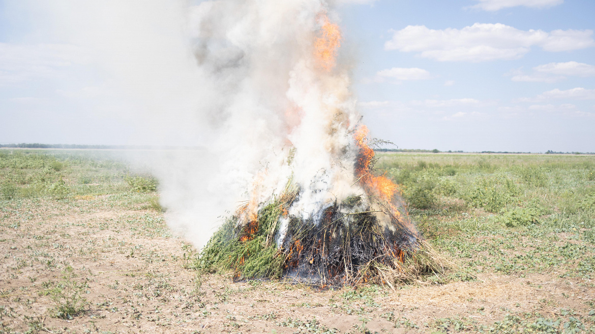В ходе реализованного комплекса мероприятий сотрудники полиции произвели уничтожение собранной дикорастущей конопли. Работа по выявлению и уничтожению её очагов продолжаются.