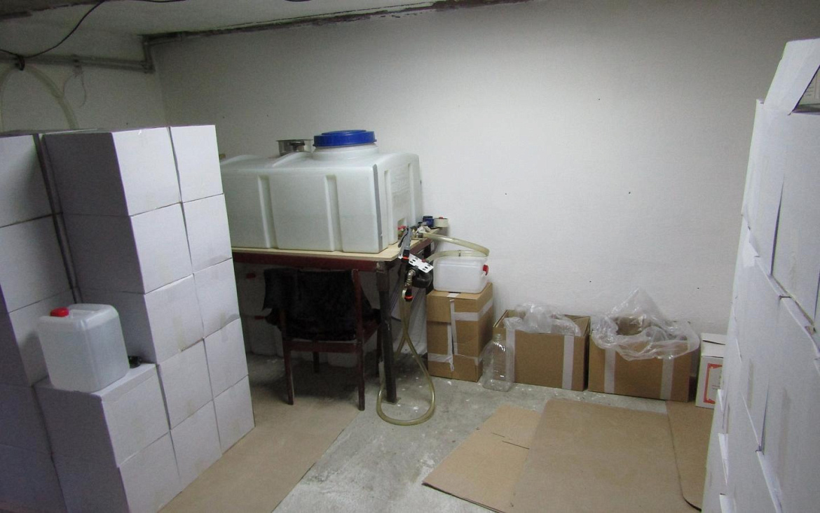 В ходе обследования жилища в одном из помещений, а также в припаркованном отечественном автомобиле стражи правопорядка обнаружили и изъяли свыше 1700 немаркированных бутылок водки ёмкостью 0,5 л, оклеенных этикетками российских производителей, тринадцать 10-литровых пластиковых ёмкостей, наполненных этиловым спиртом. Помимо этого, были найдены крышки, пустые бутылки, водяные насосы и шланги, а также аппарат для фильтрации и смягчения воды. Проведённая экспертиза показала, что содержимое бутылок не соответствует требованиям ГОСТа по органолептическим и химическим показателям, крепость алкогольных напитков не превышала 37 градусов. Общая стоимость изъятой продукции составила более 460 тысяч рублей.