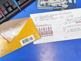 Помимо этого, оперативники, выехав в служебную командировку, обнаружили один из тайников в окрестностях г. Видное Московской области. Из схрона ими был изъят полиэтиленовый пакет с порошкообразным веществом светло-бежевого цвета общей массой свыше 570 граммов. Экспертиза показала, что изъятое содержит в своём составе наркотическое средство – мефедрон.