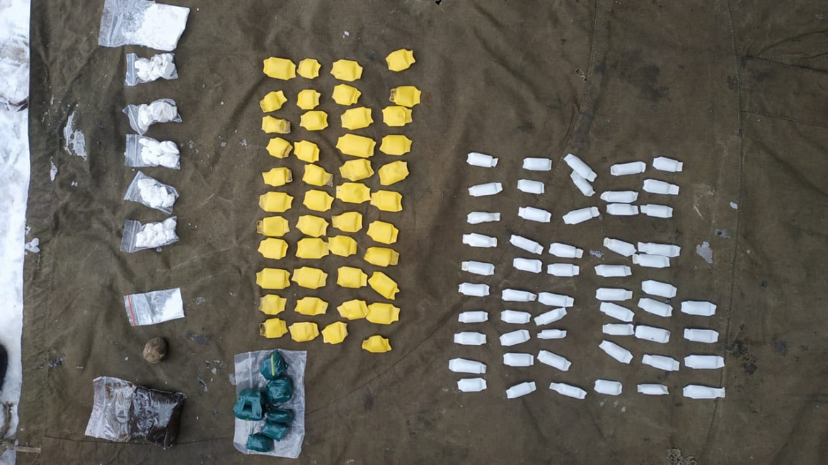 При личном досмотре, а также во время обыска по месту жительства подозреваемых сотрудники полиции изъяли наркотические средства, расфасованные почти на 5 тысяч разовых доз. Проведённое исследование показало, что это синтетические наркотики мефедрон, «соль» и «спайс» общей массой около 900 граммов. Задержанные пояснили, что работали наркокурьерами и планировали разместить свёртки с запрещёнными веществами в тайниках и в дальнейшем продавать.