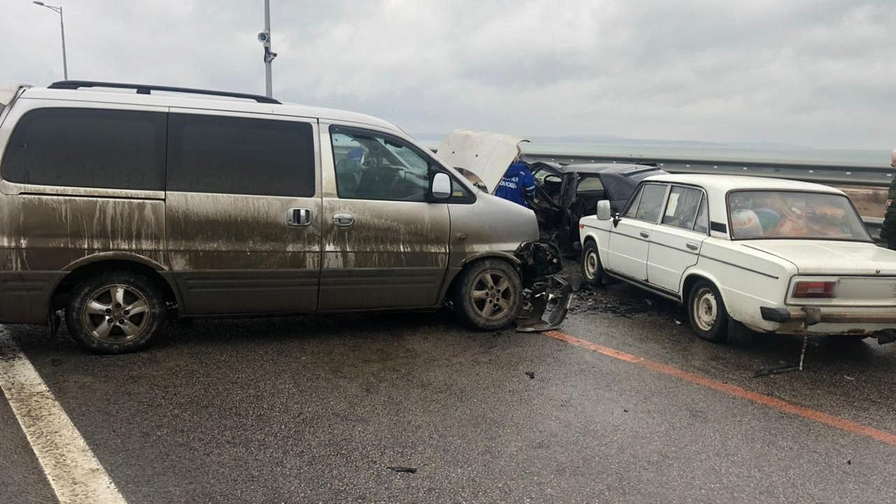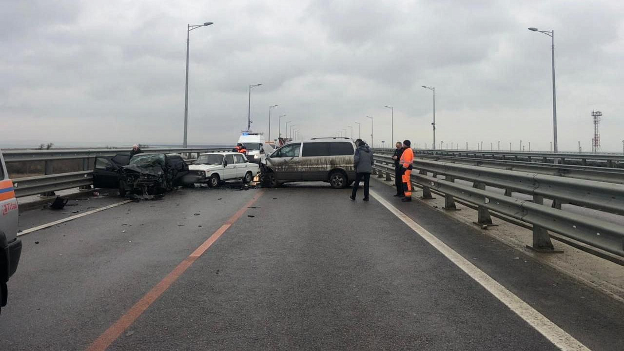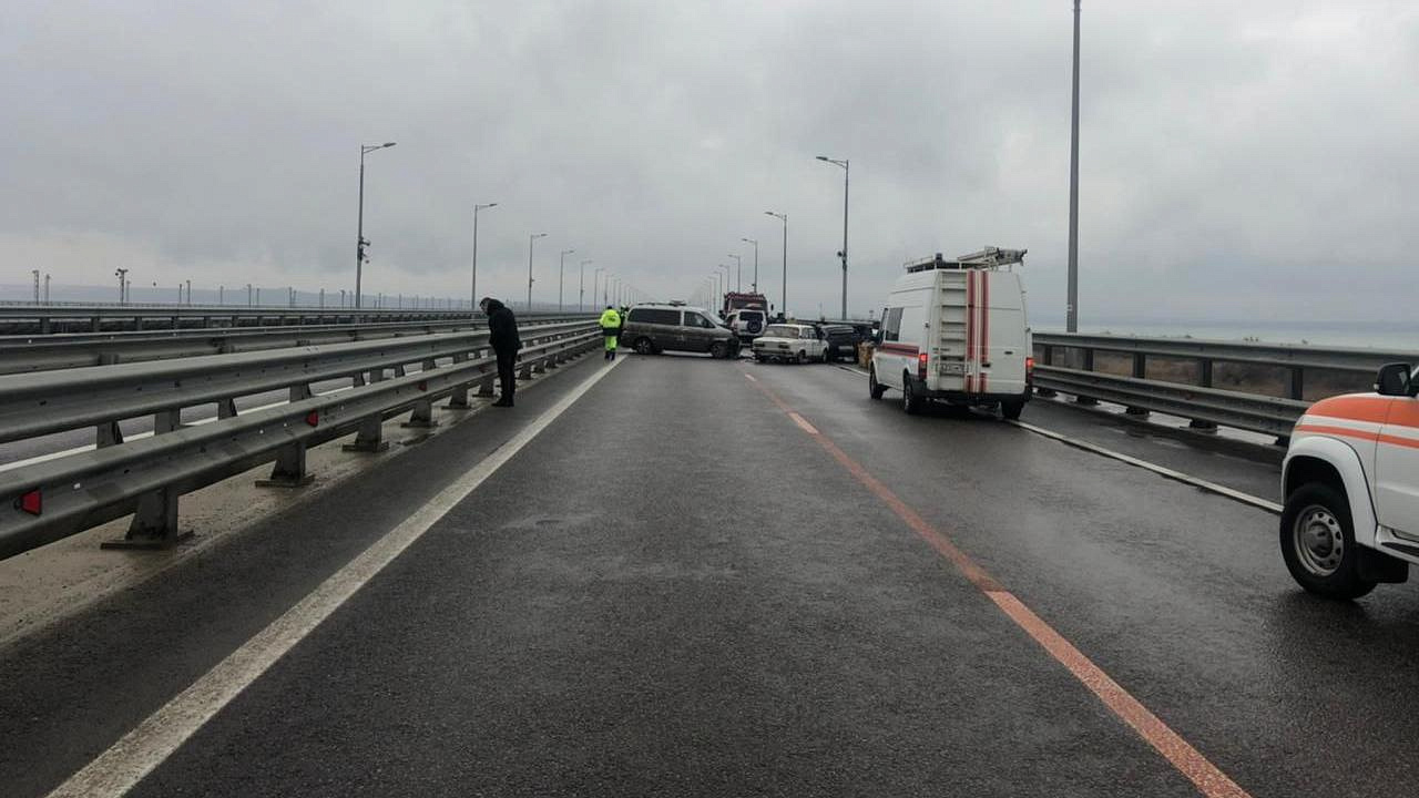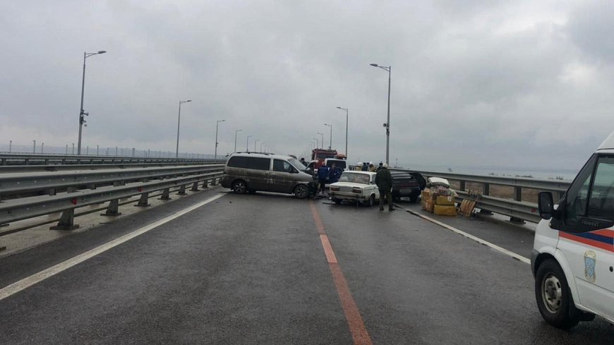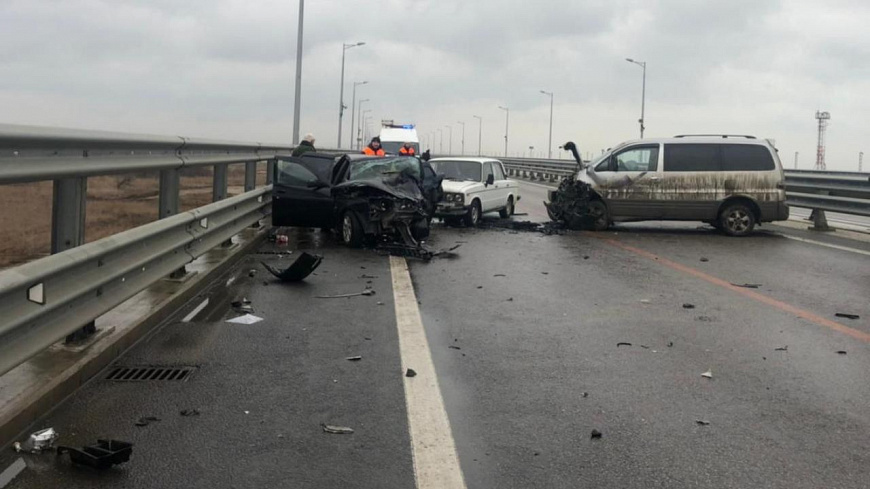 Сегодня около 7:35 в Керчи на Крымском мосту (на подъезде к аркам со стороны Крыма) произошло ДТП с участием 3 машин.