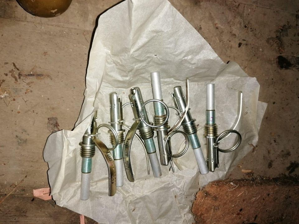 На приусадебном участке фигуранта в ходе осмотра гаража сотрудники полиции обнаружили и изъяли несколько деревянных ящиков, в которых находилось шесть гранат, шесть взрывателей к ним и 38 взрывпакетов, являющихся пиротехническими устройствами промышленного изготовления. В результате проведенных экспертиз установлено, что изъятое исправно и пригодно для использования.