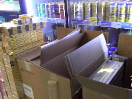 Оперуполномоченными отдела экономической безопасности и противодействия коррупции УМВД России по г. Абакану было обнаружено и изъято в двух гаражах и автомобиле местного жителя более тысячи бутылок объемом 0,5 литра немаркированной алкогольной продукции, 17 канистр объемом 20 литров со спиртосодержащей жидкостью, а также 12 600 пачек табачной продукции отечественного и импортного производства с признаками подделки.
