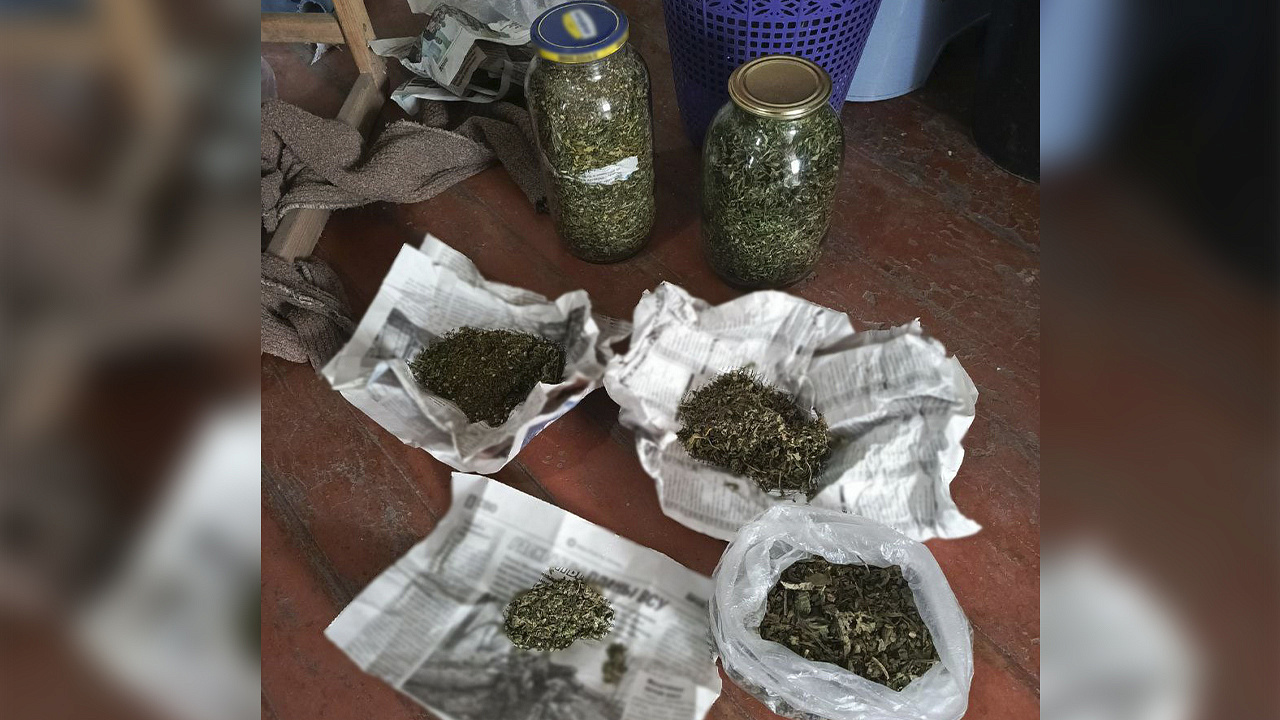 В ходе осмотра домовладения подозреваемого полицейские изъяли свёртки и стеклянные банки с растительным веществом с характерным запахом марихуаны. Со слов мужчины, он сорвал коноплю на окраине села, высушил её и хранил для собственного употребления без цели сбыта.