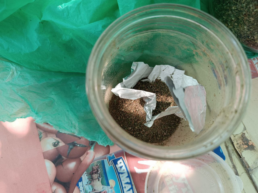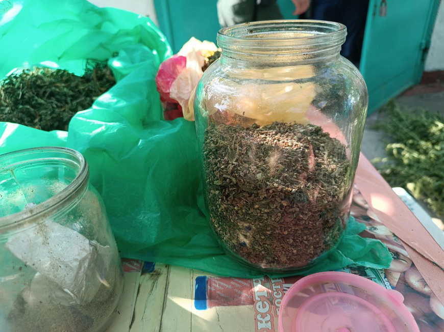 В Горностаевском районе Херсонской области правоохранители во время осмотра домовладения жителя пгт Горностаевка обнаружили и изъяли 2 стеклянные банки, 2 полимерных пакета и картонную коробку с серо-зелёным веществом растительного происхождения с характерным запахом марихуаны общим весом порядка 777 г, а также металлическое сито с сухими частями марихуаны.