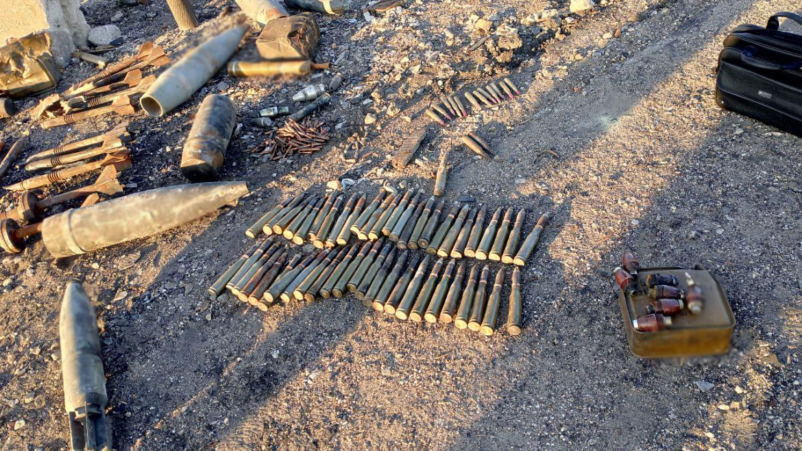 Для обследования местности площадью около трёх квадратных километров были привлечены кинологи с тремя служебно-розыскными собаками, а хранилище поделено на сектора. В результате полицейские обнаружили 2 осколочных гранатометных выстрела, 2 выстрела от РПГ, 34 взрывателя АР-5, 110 патронов калибра 7,62 и 14,4 миллиметра, а также около 3 кг тротила и 20 кг артиллерийского пороха.