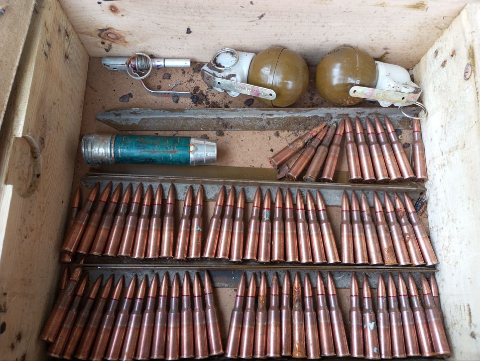 Из тайника, оборудованного в мангальной печи, стражи правопорядка изъяли деревянный ящик с патронами калибра 7,62 мм в количестве 69 штук, двумя гранатами РГН, одним выстрелом ВОГ-17, запалом УЗРГН и ноутбуком. Найденные предметы помещены в комнату хранения территориального отдела полиции до принятия процессуального решения по данному материалу проверки.