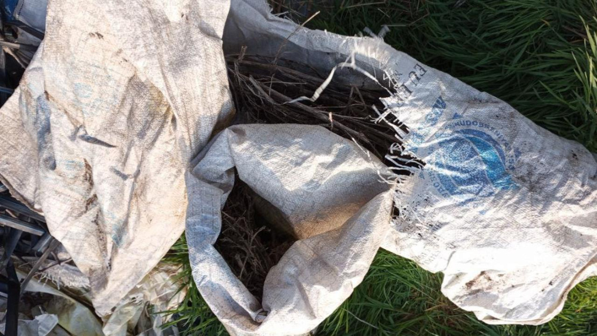 Правоохранители выявили и изъяли в 3 км от населённого пункта рядом с лесополосой 3 полиэтиленовых мешка, наполненных сухими частями растения буро-зелёного цвета со специфическим запахом конопли общей массой 1 кг.