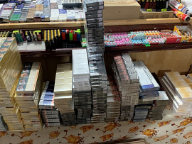 В ходе осмотра помещения торговой точки стражи правопорядка обнаружили и изъяли более 1 000 пачек немаркированной табачной продукции различных наименований.