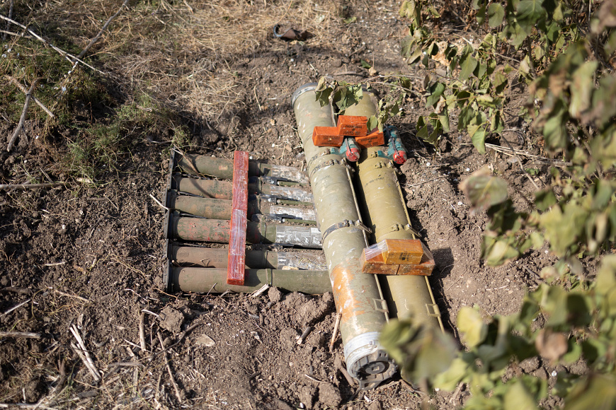С применением средств аэроразведки на расстоянии около 1,5 км от указанного населённого пункта в поле в зарослях травы правоохранители обнаружили схрон со следующим содержимым: два выстрела ПТУР9М-113М, пять РШГ-2, один выстрел РПГ-26.