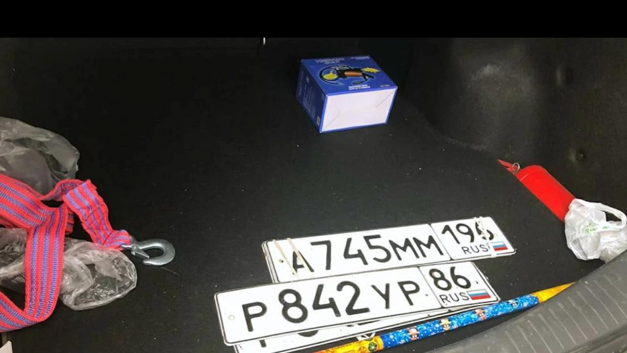 При досмотре в его автомобиле были обнаружены и изъяты обрез гладкоствольного ружья, автомат Калашникова, порядка 200 патронов разного калибра, а также маски, имитирующее лицо человека, форменное обмундирование полиции, 4 сотовых телефона и 10 сим-карт. Помимо этого в багажнике находились подложные номера, которые использовались им с целью конспирации при совершении преступлений.