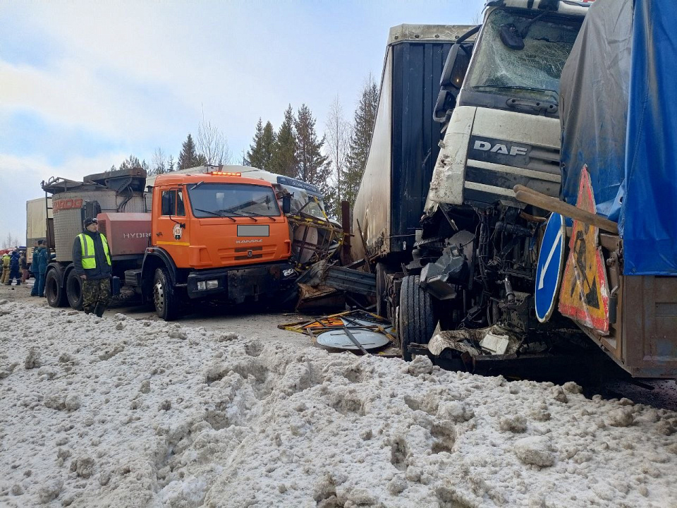 Сегодня в Котельничском районе Кировской области в 10 часов 10 минут на 522-м километре федеральной автодороги Р-243 Кострома – Шарья – Киров – Пермь произошло массовое ДТП с участием шести транспортных средств.