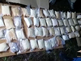 В нём сотрудники полиции обнаружили и изъяли 122 канистры с жидкостью, подносы и стеклянные лотки с остатками вещества, электронные весы, оборудование для синтезирования наркотика, а также 2 свёртка с порошком массой примерно 2 кг. Согласно заключению эксперта ЭКЦ ГУ МВД по Московской области, в одном из изъятых свёртков находился мефедрон.