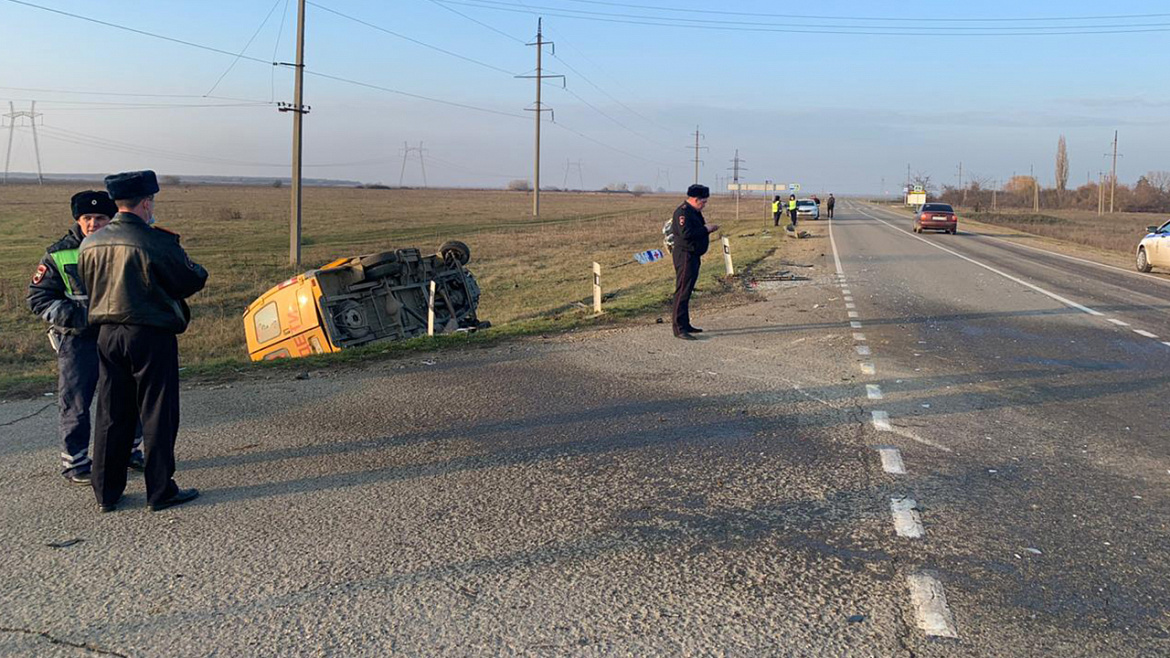 В Абинском районе Краснодарского края на автодороге Новомышастовская-Холмская произошло дорожно-транспортное происшествие с участием школьного автобуса (ГАЗель).