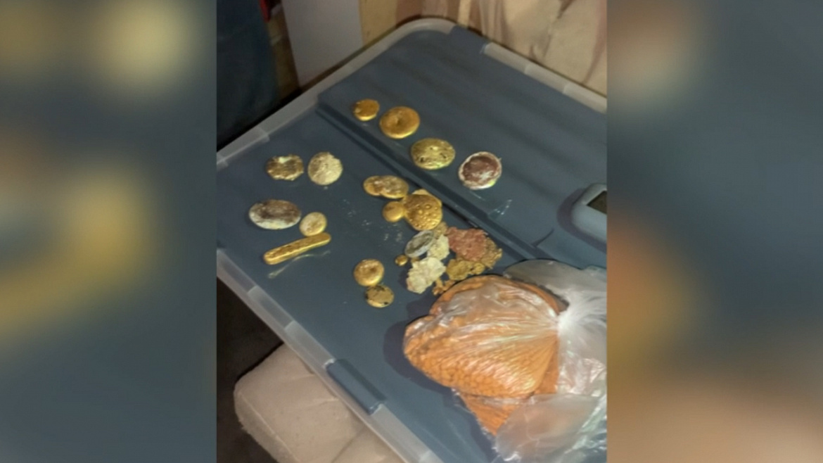 При проведении оперативно-розыскных мероприятий в п. Солонцы сотрудники отделения экономической безопасности и противодействия коррупции МУ МВД России «Красноярское» обнаружили и изъяли у ранее судимого местного жителя 1978 года рождения песок жёлтого цвета весом более 450 г., самородное золото весом более 130 г., 18 золотых слитков общим весом более 1 кг, а также индукционную печь и тигли (ёмкости для нагрева, высушивания, сжигания, обжига или плавления различных материалов).