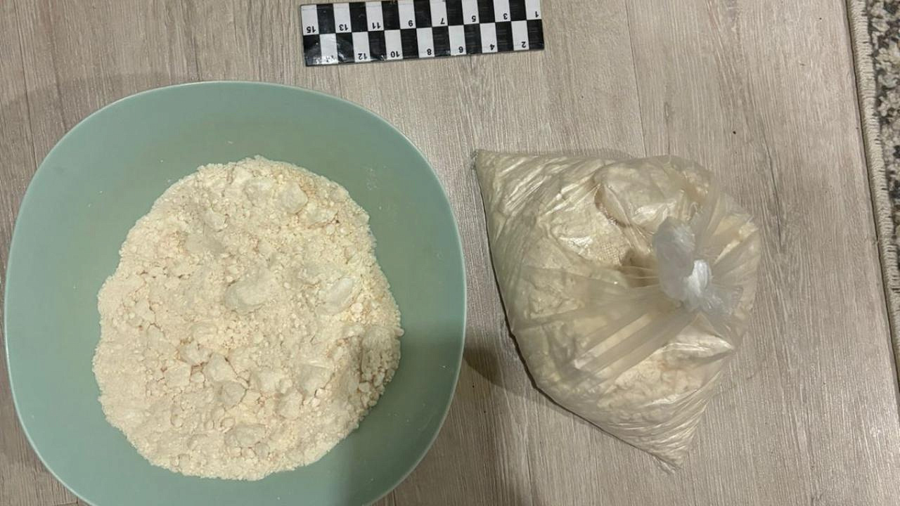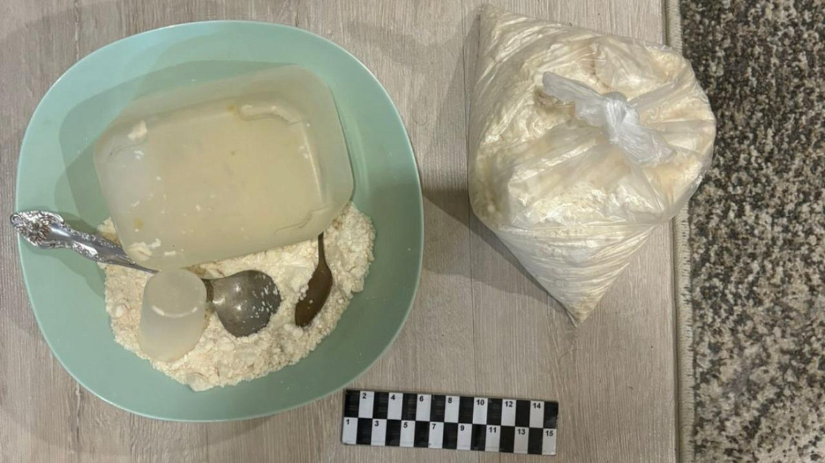 Во время обследования жилища злоумышленника полицейские обнаружили и изъяли спрятанные в ящике кресла-кровати тарелку и пакет с белым порошком. Экспертиза установила, что найденным веществом является N-метилэфедрон общей массой свыше 850 граммов.