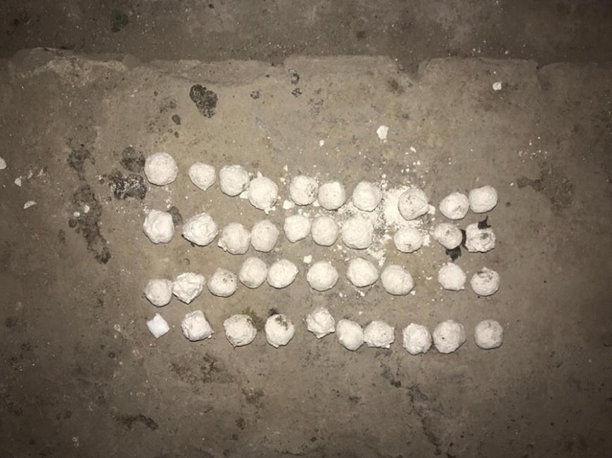 В дальнейшем в ходе обыска у него дома были обнаружены и изъяты наркотические средства растительного происхождения, сильнодействующие и психоактивные вещества, а также упаковочные материалы. Часть из веществ была спрятана внутри пластилиновых шариков и гипсовых слепков, замаскированных под камни. Таким образом злоумышленник планировал сделать будущие закладки незаметными для прохожих.