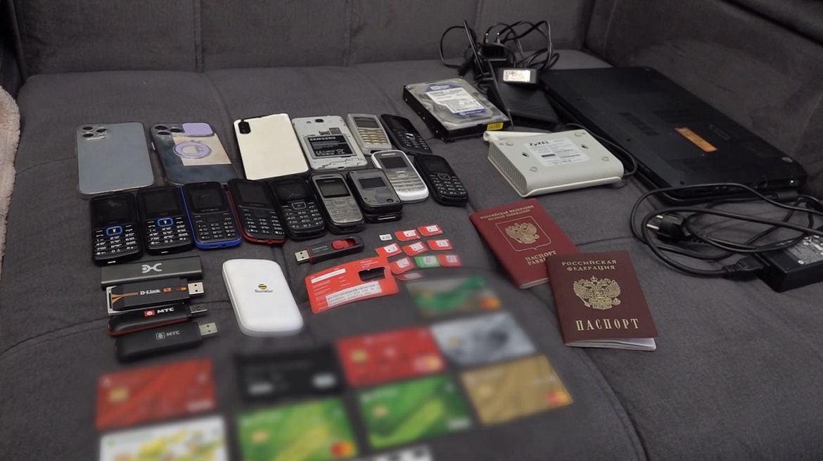 Оперативники провели обыск по месту жительства подозреваемого, изъяли десятки мобильных телефонов, сим-карты и банковские карты.