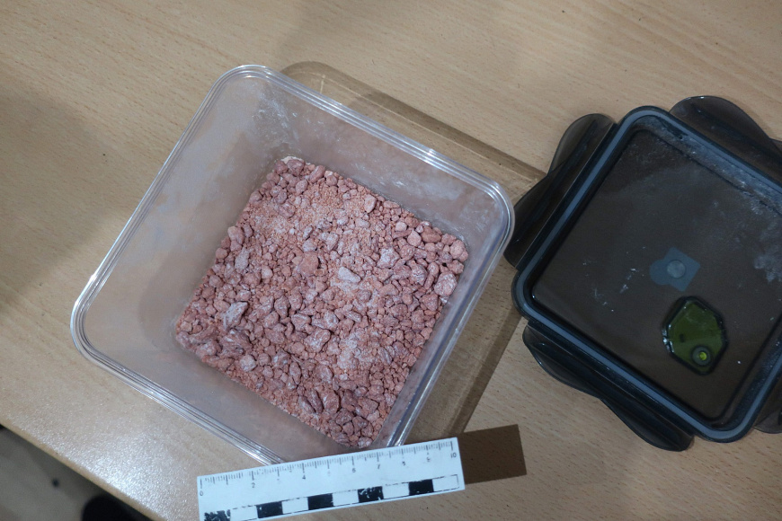 Также в ходе неотложного обыска по месту жительства молодого человека были обнаружены и изъяты два контейнера, три пакета, 23 свёртка и 115 маленьких пакетиков с комплементарной застежкой с разовой дозировкой наркотиков внутри. Согласно экспертизе, изъятые вещества являются смесями, содержащими амфетамин и мефедрон. Их общий вес составил более 1,3 кг.