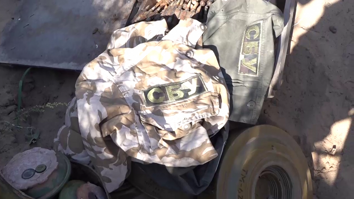 Установлено, что тайник был организован во время отступления украинскими боевиками, что также подтверждает изъятая из него форма спецслужб Украины.
