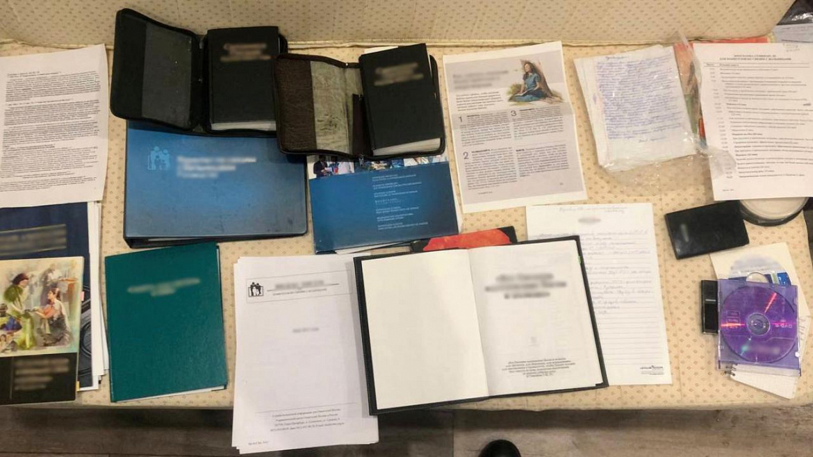 В ходе обысков, проведённых по десяти адресам, обнаружены и изъяты записные книжки и тетради с рукописными и машинописными текстами, книги, визитки, открытки, видео- и аудиокассеты религиозного содержания, агитационные брошюры, планшетные компьютеры, мобильные телефоны и флеш-накопители.