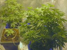 В ходе осмотра квартиры оперативники обнаружили гроубокс, где в ёмкостях росли девять кустов похожих на каннабис растений, а также 16 вакуумных пакетов с измельчёнными веществом растительного происхождения общей массой около шести килограммов и несколько контейнеров с аналогичным содержимым.