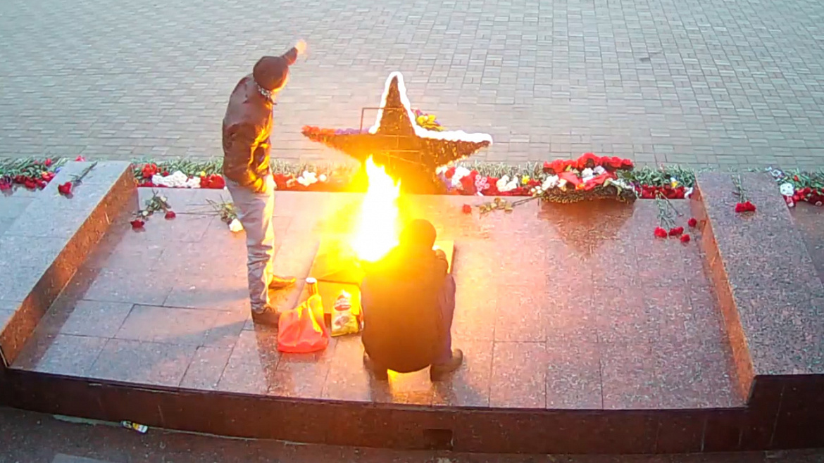 Прибывшими на место происшествия сотрудниками полиции были задержаны подозреваемые – двое местных жителей в возрасте 38 и 40 лет. Установлено, что мужчины распивали спиртные напитки, греясь у огня мемориала Вечный огонь.
