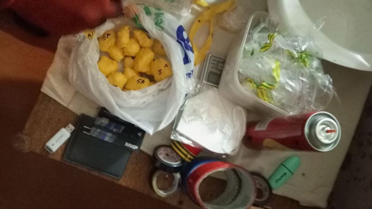 В дальнейшем при проведении обысковых мероприятий по месту жительства наркосбытчика оперативники обнаружили и изъяли 20 полимерных свёртков, содержимым которых оказалось свыше 255 граммов МДМА, амфетамина и «соли», а также zip-пакеты, изоленты различных цветов, электронные весы и банковские карты.