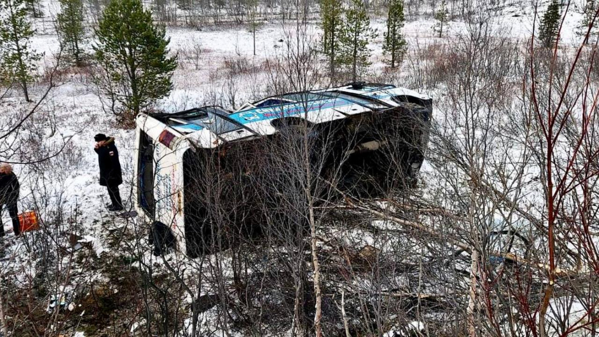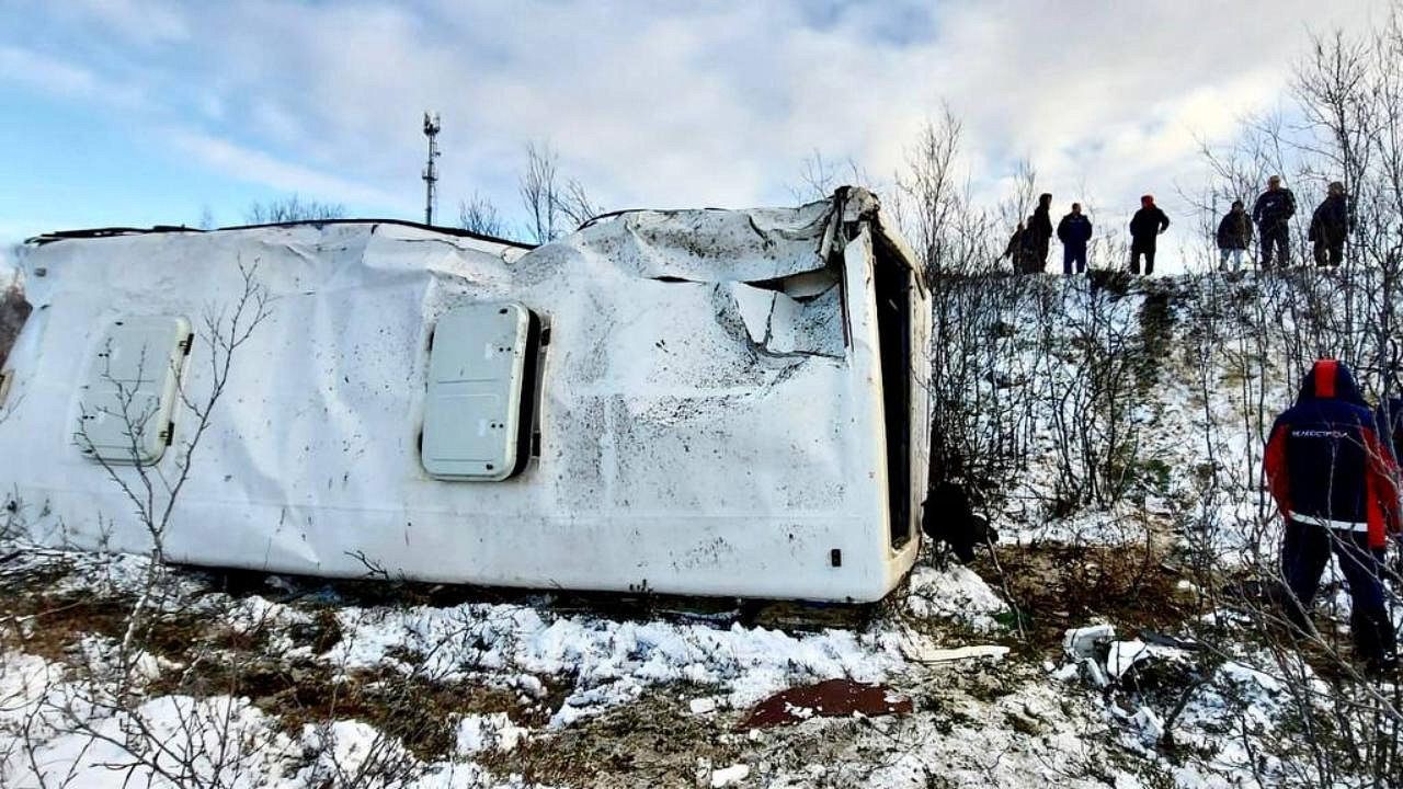 Сегодня днём в Мурманской области на 1 км трассы Мишуково – Снежногорск водитель междугороднего автобуса, выполнявшего рейс из Снежногорска в Мурманск, не справился с управлением и допустил съезд в кювет с опрокидыванием на бок.