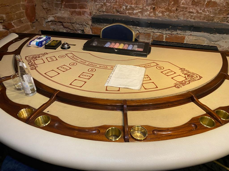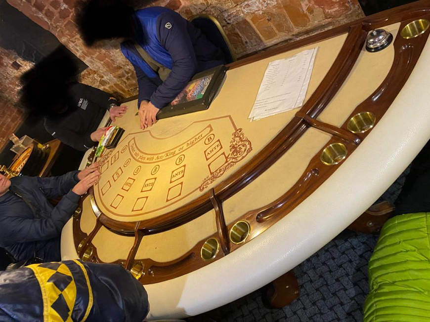 На момент проведения оперативных мероприятий в казино находились пять посетителей и персонал заведения. При осмотре помещений обнаружены и изъяты: один стол с рулеткой, столы для игры в покер, пять игровых автоматов и документы, свидетельствующие об осуществлении игорной деятельности.