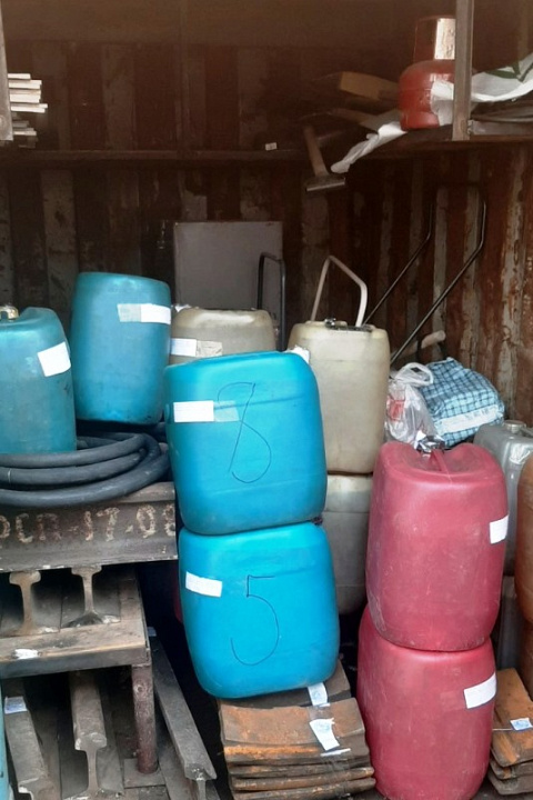 Установлено, что злоумышленники повредили запорно-пломбирующее устройство цистерны и при помощи резинового шланга перелили топливо в 35-40-литровые ёмкости. Однако при попытке вывезти 12 канистр с территории станции были задержаны полицейскими.