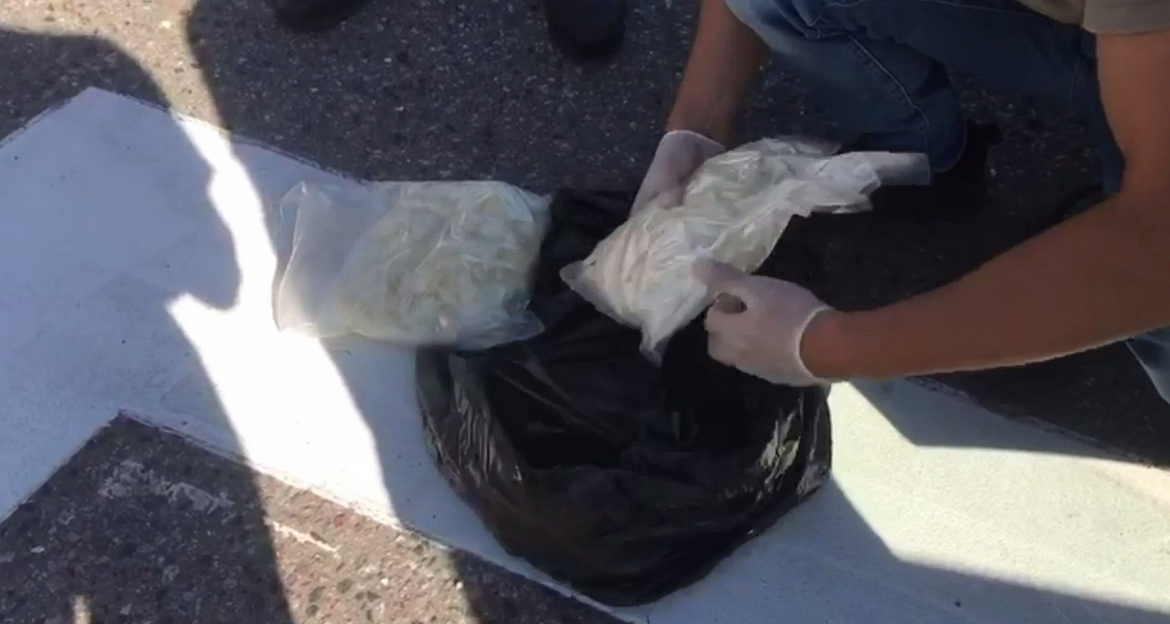 Запрещённое вещество было спрятано под передним пассажирским сиденьем в салоне его автомобиля. Исследование показало, что изъятое является мефедроном общей массой свыше двух килограммов. Его общая стоимость составляет около 5 миллионов рублей.