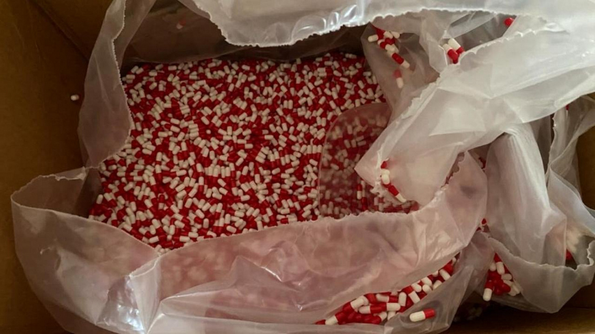 В ходе обысков был обнаружен склад сильнодействующих веществ, откуда изъяты полимерные бочки с веществом белого цвета, несколько десятков коробок, в которых хранились 200 тысяч капсул, приготовленных для отправки в другие регионы России, а также пакеты, ёмкости и приборы для фасовки, станок для упаковки капсул, электронные весы и другие вещественные доказательства. Проведённое исследование показало, что изъятое является сильнодействующим веществом – прегабалином общей массой порядка 78 кг.