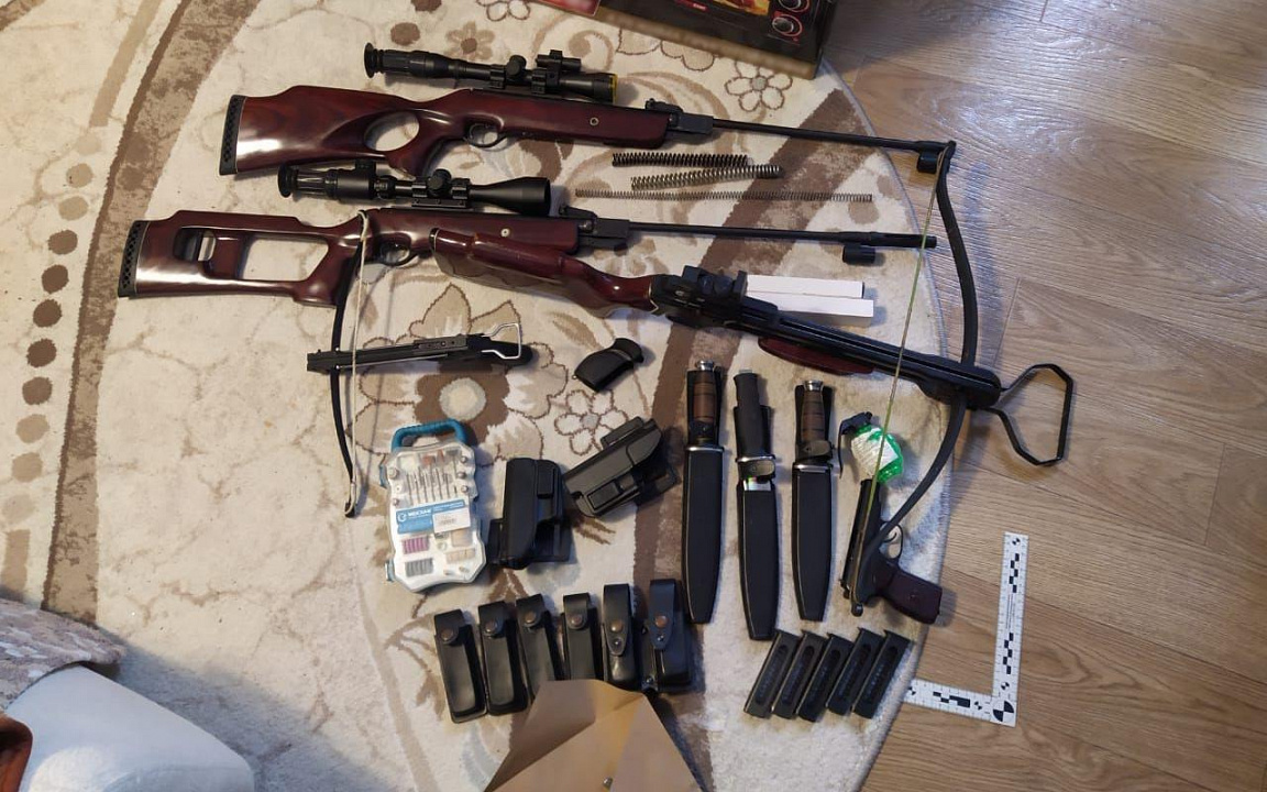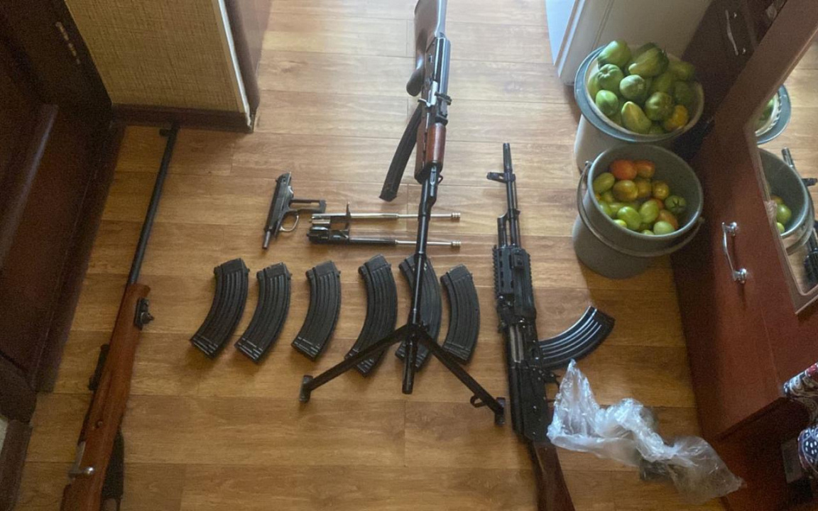 Там сотрудники обнаружили и изъяли переделанные карабин «Вепрь», две пневматических винтовки и три пистолета, а также многочисленные запчасти к различным видам оружия, более 1000 патронов и порох.