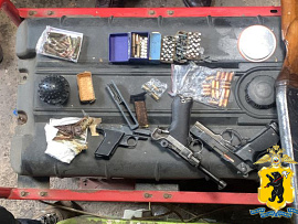 При осмотре места жительства задержанного полицейские обнаружили и изъяли гладкоствольное ружьё, травматический пистолет, более 180 патронов различного калибра, три банки пороха и более 170 пустых гильз.