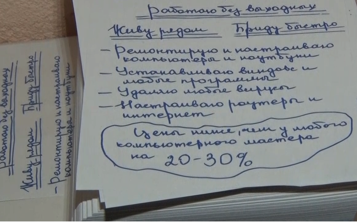 Лидер преступной деятельности подготавливал, распечатывал и распространял листовки с соответствующим объявлением на территории Пензы. К откликнувшимся на них клиентам отправлял своих подельников. Если в процессе работ приглашённый специалист понимал, что заказчик не разбирается в нюансах устройства электронной техники, он начинал действовать по заранее отработанной схеме.
