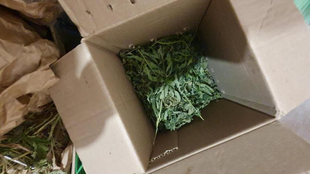 Во время обследования его жилища правоохранители обнаружили предмет, похожий на нож, которым он ударил потерпевшего. Помимо этого, в квартире были найдены и изъяты 2 коробки с марихуаной общим весом около 1,8 кг, а также 2 горшка с коноплёй, что подтверждено экспертизой.