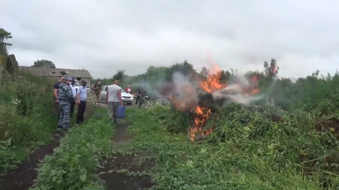 С помощью специальной техники путём скашивания и сжигания полицейские уничтожили очаг произрастания каннабиса. Общая масса уничтоженных растений составила более 2,5 тонны.