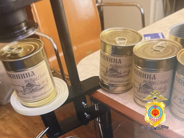 Изъято более 200 граммов наркотиков, электронные весы, изолента, упаковочный материал, а также машинка для закатки жестяных банок и тара с этикетками тушёной свинины.