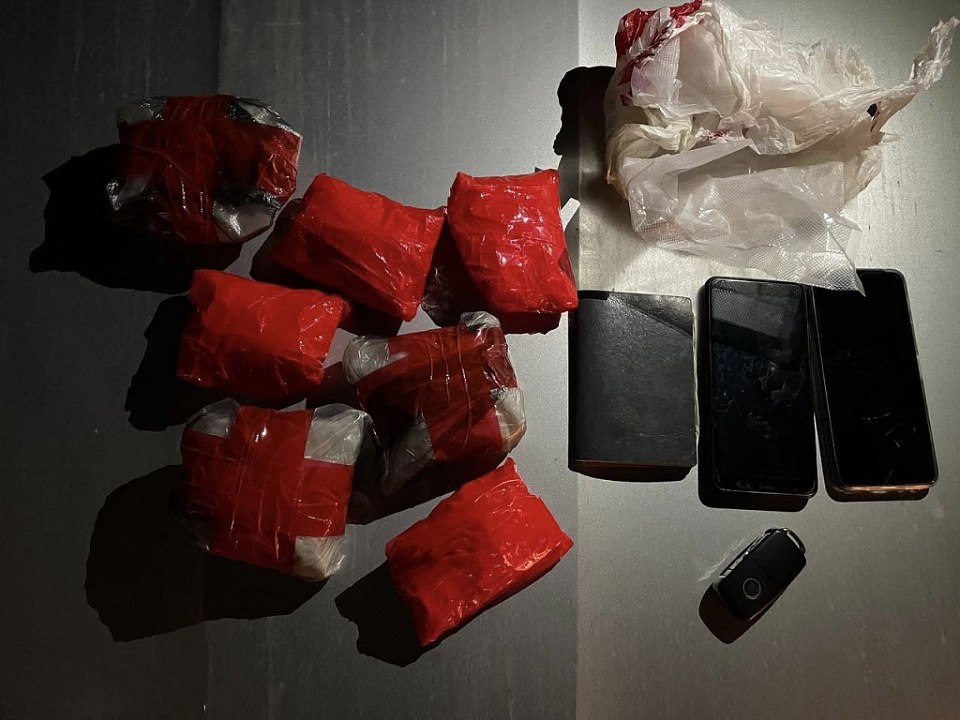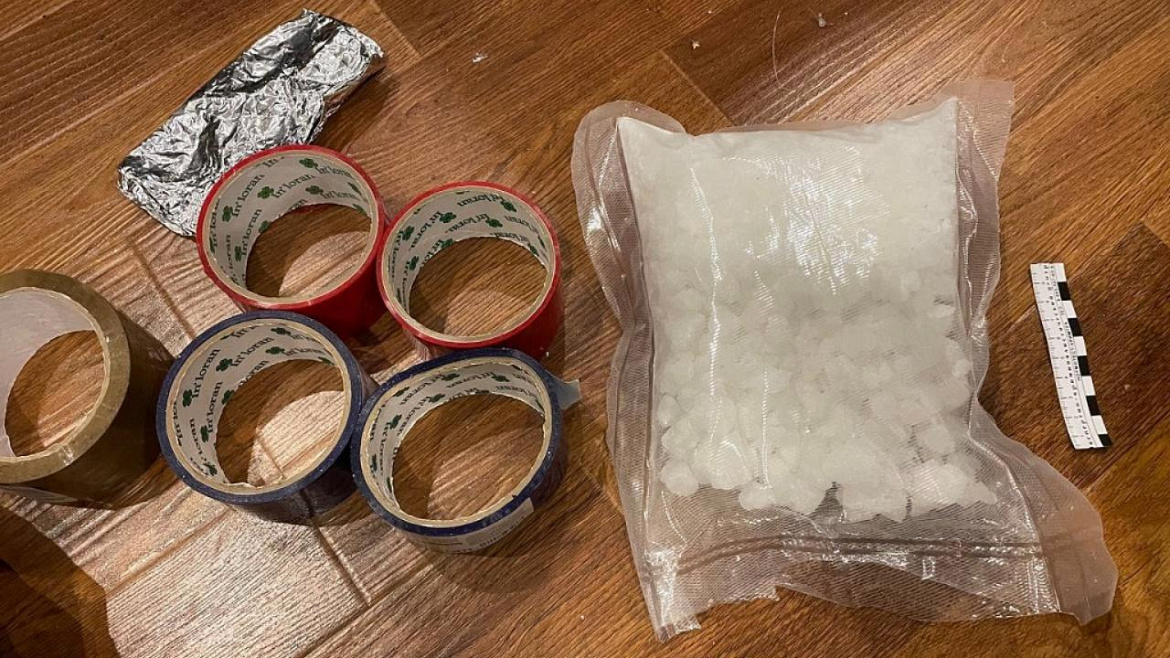 При личном досмотре у мужчины в карманах куртки обнаружено и изъято 7 свёртков, обмотанных изоляционной лентой, два мобильных телефона и семь банковских карт. В ходе осмотра арендованного злоумышленником гостиничного номера в д. Малое Видное под кроватью были найдены ещё один свёрток, весы, вакууматор, фрагменты фольги и пять рулонов изоленты. Общий вес изъятого неизвестного вещества составил порядка 2 кг.