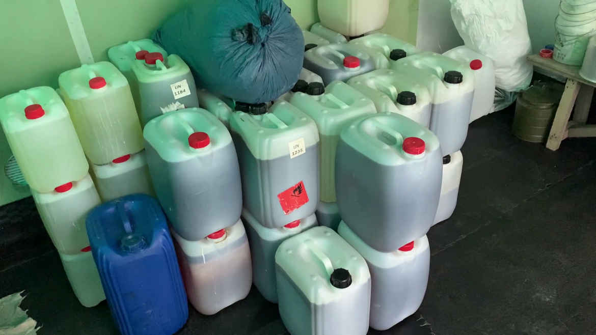 Установлено, что в арендованном гаражном боксе, расположенном в Гаражном проезде, злоумышленник организовал лабораторию по производству наркотика. Во время обыска данного помещения полицейские обнаружили и изъяли 6 пластиковых вёдер и 20 канистр с прозрачной жидкостью и кристаллообразным веществом, противогазы, весы, стеклянные сосуды, фильтры, компрессор, а также спецодежду.